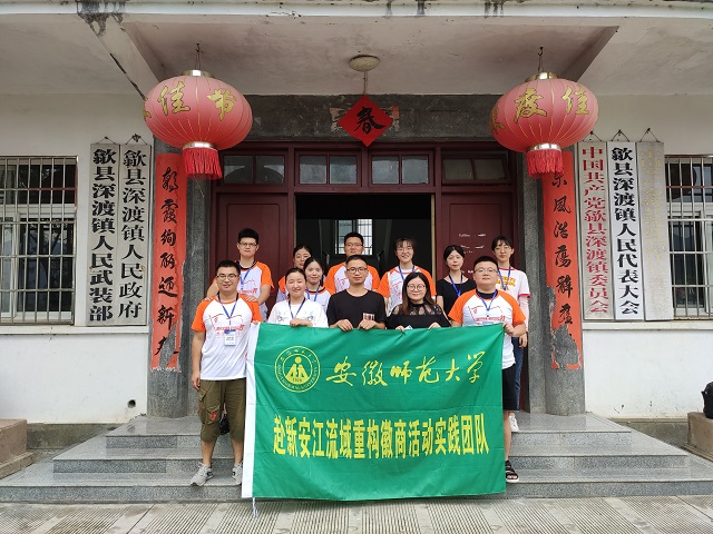 上午8时,团队抵达深渡镇人民政府,受到组织部干事张艳红的热情接待,张同志安排了一名委员实地陪同我们参观与调研。在委员的带领下,团队来到深渡社区党群活动中心,中心邀请到退休中学教师胡黑龙老师为我们悉心讲解,胡老师是土生土长的深渡人,他为我们介绍了从古以来的深渡徽商的商业活动,并带领团队参观了当地最大家族的宗祠——姚氏祠堂、徽州著名商业园区——丝绸文化园,在胡老师的讲解中我们对深渡镇的徽商文化有了更深层的了解。中午我们受到了深渡政府工作人员的热情款待,好客的委员还在饭后午休时间为我们弹奏了吉他助兴,为今日的调研之旅增添了不少乐趣。