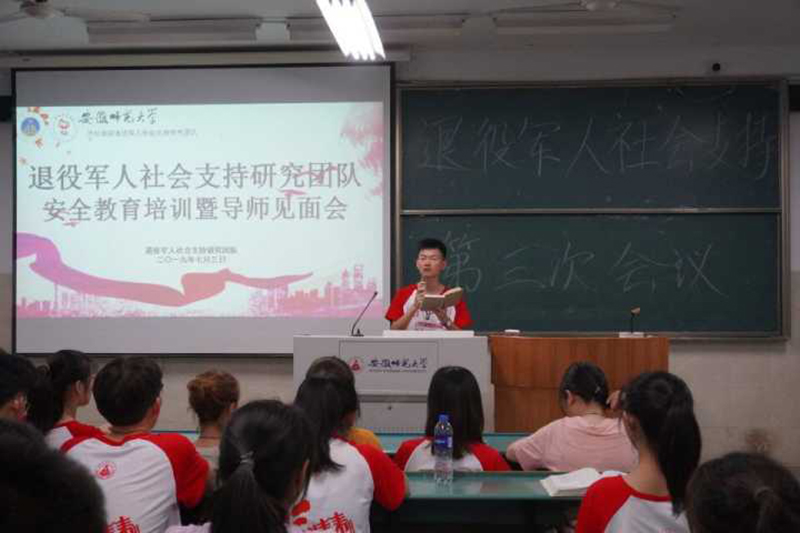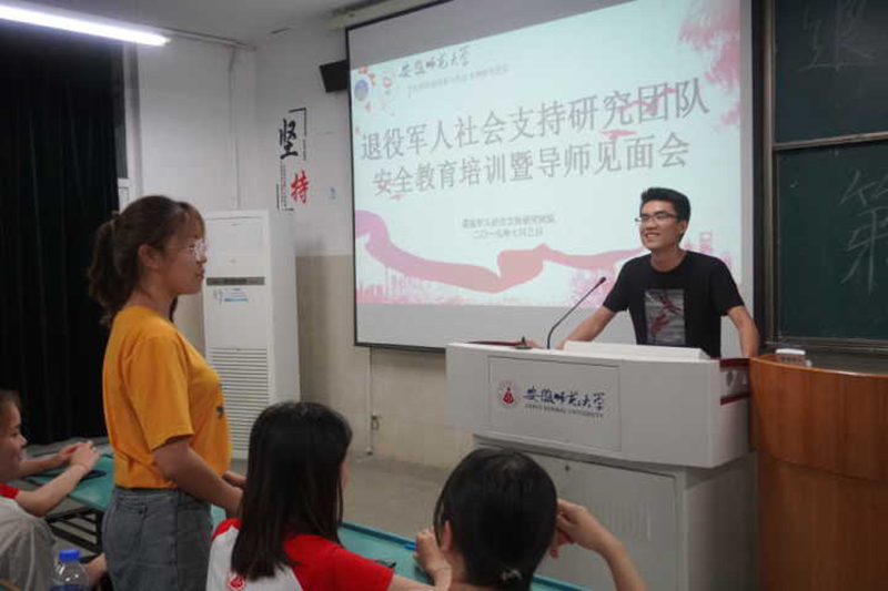 本网讯(查伟东)为了确保暑期社会实践的顺利进行,2019年7月3号晚上七点,英国正版365官方网站历史与社会公司赴芜湖退役军人社会支持研究团队安全教育培训暨导师见面会在行知楼2010602顺利召开,团队指导老师孔卫拿及团队全体成员全部到场,就实践过程中的安全问题以及新闻稿的正确用语问题进行了着重强调与深入学习。