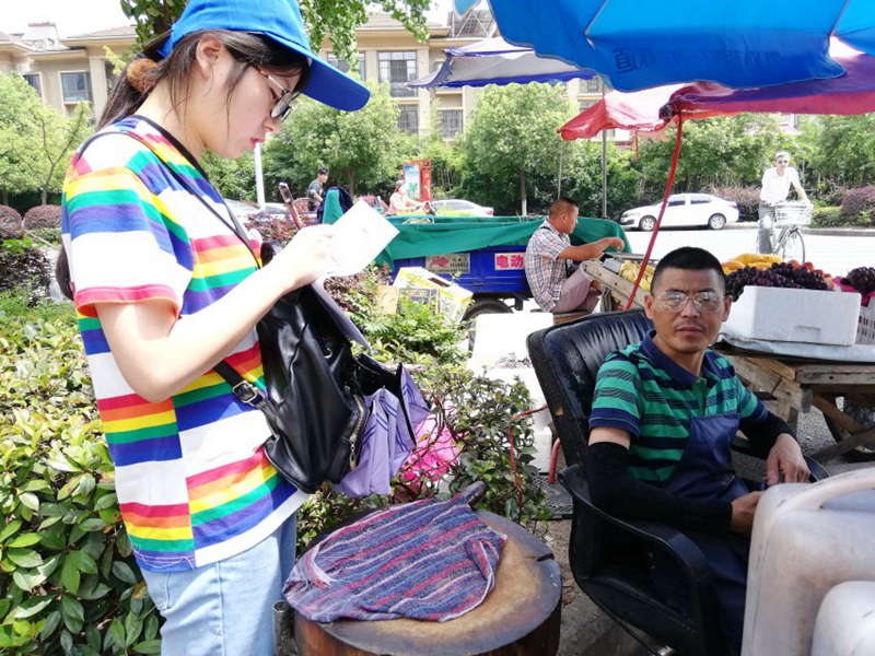 小彩虹团队到达柏庄丽城时,已是艳阳高照。队员们不顾炎热,立即四散开来开展问卷调查。但由于天气炎热,社区内行人稀少,小彩虹团队上午的调查收效甚微。下午,在总结上午的经验教训后,小彩虹团队于下午三点出发,到达后稍作休息,选择在人流量最高的四点到六点间派发和回收问卷,结果效率大涨,但同时队员们也遇到了许多问题。比如社区内的很多老人文化水平有限,不认识字。对于这个问题,小彩虹队员们耐心地为老人们读题目,解释选项设置,争取获得最真实有效的信息。调查活动结束后,小彩虹团队返回公司稍作休息。在晚上九点开展总结会议,总结白天活动时的优点和不足,圆满的结束了一天的问卷调查活动。