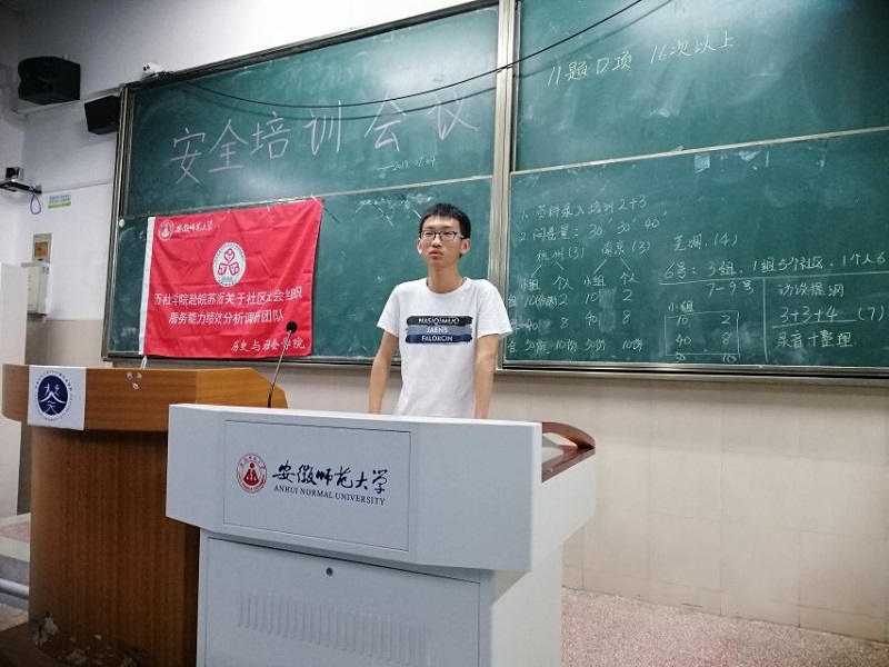 本网讯(历社公司 洪星)历社公司赴皖浙苏社会组织服务能力绩效分析团队于2019年7月4日晚上6点在行知楼2050101教室开展了一次安全培训会,全队十五人全部到场,为接下来的调研活动做铺垫。虽然大家都刚刚经过考试,但热情不减。