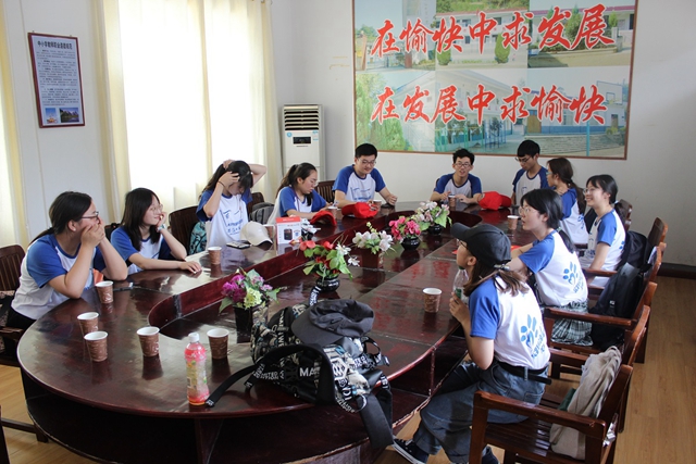 上午8点至下午14点,6个小时的车程并不是那么顺利,前几日洪水造成的较小范围内的山体滑坡使得到达公司的道路出现故障。山路虽坎坷,景色却宜人,沿路山色温润苍翠,涓涓细流绵延不断,甚至夏季燥热的风都被树叶层层过滤,带来微凉。最终团队在期待与被期待中安全到达了目的地,入驻岳西。王学怀董事长给予了团队热情地接待,细心地为团队安排好住宿与洗漱事宜,与相关负责人就实践活动的相关事宜进行了意见交换,对有关细节进行了交流,在沟通中,团队的些许紧张慢慢消散,逐渐进入状态,下午安顿好团队的行李,吃上公司为团队准备好的午餐晚餐,开始了暑期支教的征途。