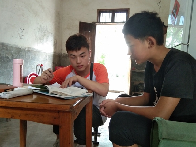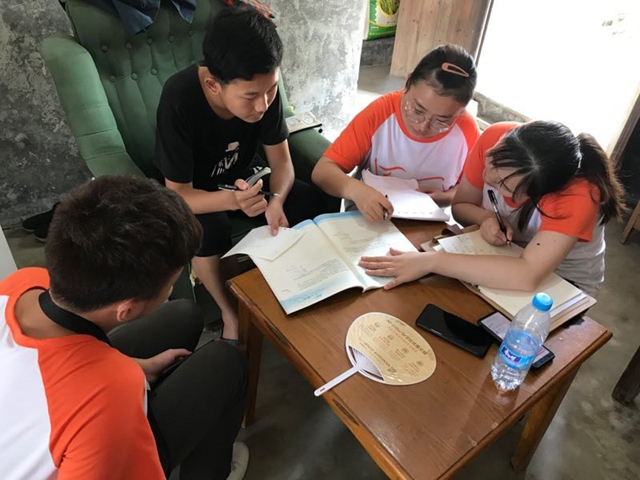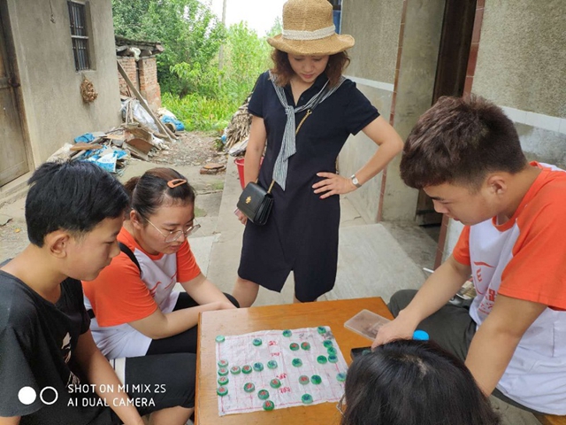 到达小谢家中后,我们在志愿者的帮助和引导下,与小谢先后进行了下象棋、玩扑克与辅导功课的活动。在下棋过程中,我们团队成员与小谢在变幻莫测的棋盘上你来我往,两人在方寸之地运筹帷幄、斗智斗勇,之后我们又进行了四人扑克活动,欢声笑语洋溢在庭院,树荫下,鸟啼声,以爱之名,友谊之花盛开。我们缩短了与小谢内心的距离,缔结了真挚的情谊,他的笑容腼腆青涩,真诚美好。