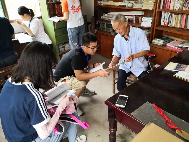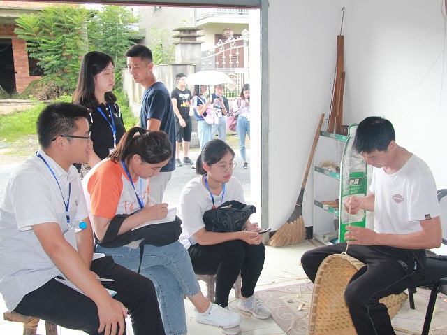 下午,我们来到了王村镇烟村,在本镇干事汪潘炜的带领下,我们拜访了竹工艺品第八代传承人王志元,他详细介绍了竹技艺传承、精神承载,还表达了对技艺面临失传的焦急的心情。之后,团队分组进行村内走访,主要针对可能了解徽商活动的老人进行采访,收集到一些关于明清徽商的信息,受益颇多。