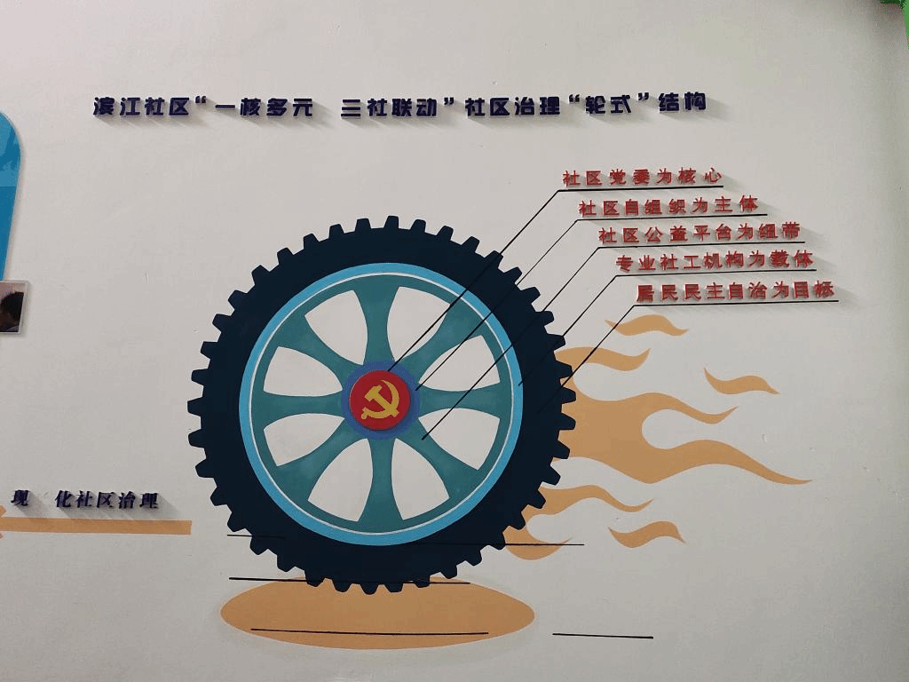 图注:“一核多元,三社联动”社区治理“轮式”结构 刘祥慧摄