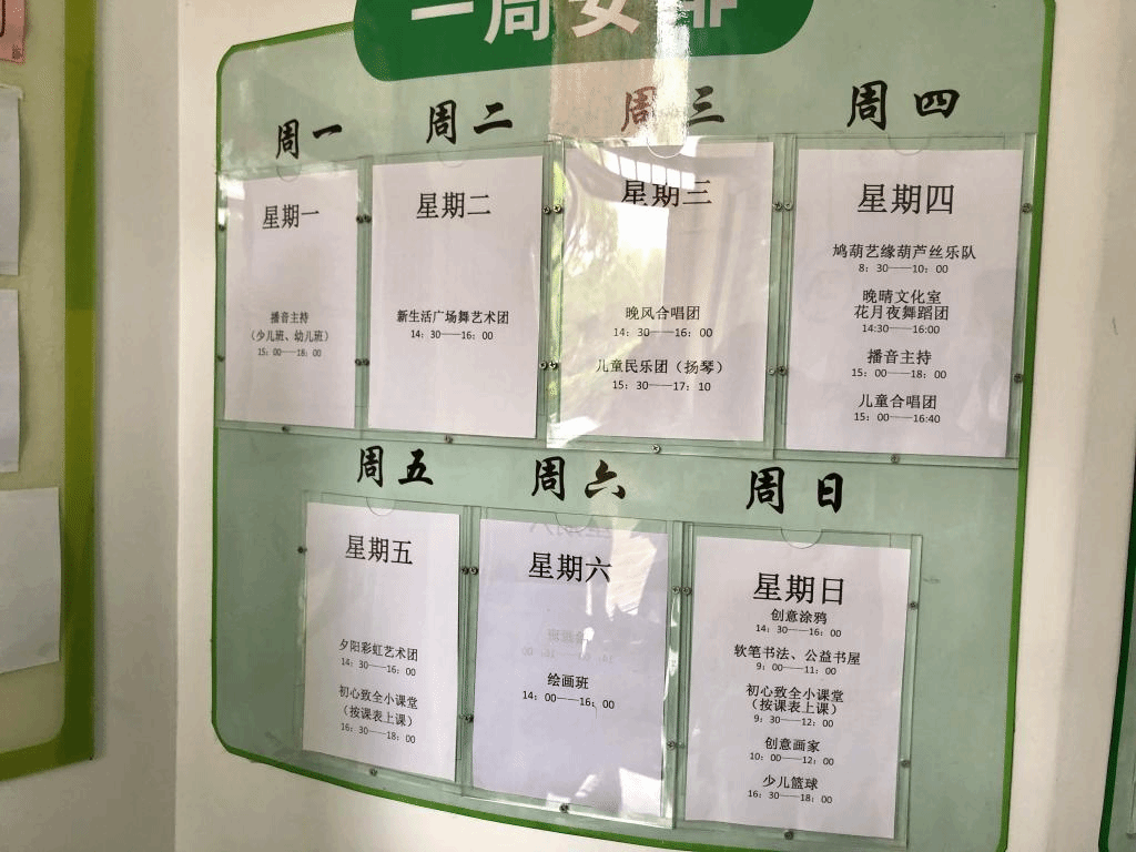 图注:弘德一周活动安排 刘祥慧摄