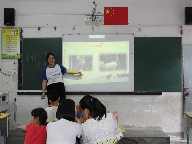 欢迎仪式过后,第一天的教学活动正式开始,孩子们被分为两个班,分别听由刘懿斐带来的韵味语文课堂之水调歌头以及方晓雪带来的民俗课堂。课上,同学们认真听讲,积极踊跃的互动发言。一双双求知若渴的眼睛,一双双高高举起的小手,一声声整齐划一的读书声,是对志愿者们最大的肯定和鼓励。上午的教学活动就在一片欢声笑语中结束了。
