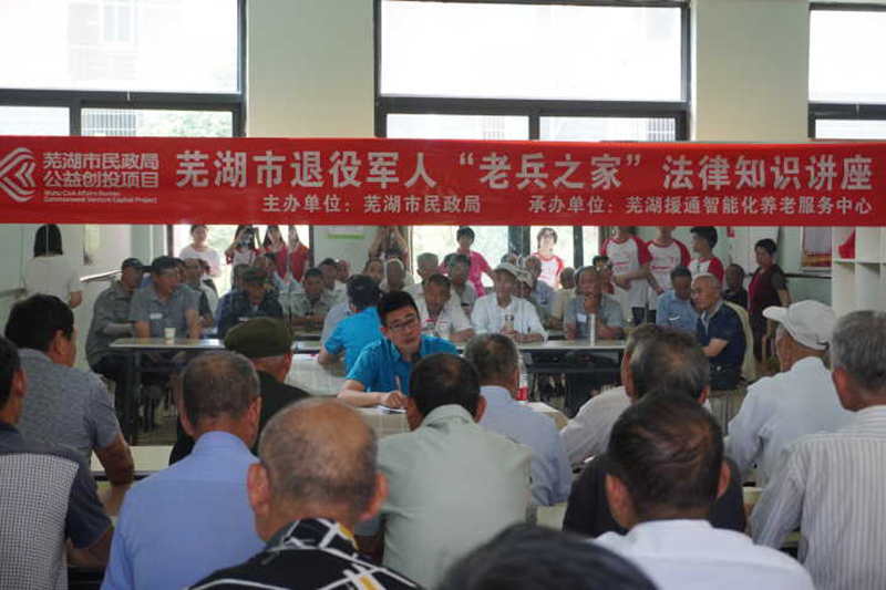 本网讯(方萱)7月11日上午,受芜湖援通智能化养老服务中心邀请,英国正版365官方网站历史与社会公司退役军人社会支持研究团队来到了芜湖市鸠江区万春社区医养中心老兵之家,团队成员和“老兵之家”的三十多位老兵共同参加法律知识讲座培训活动,并在活动结束后对老兵进行了调研访谈。