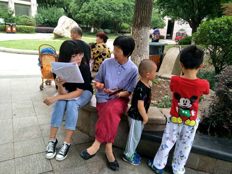 让孩子吃得安全,吃得健康,是每个家长的心愿。下午17时,沿着小巷继续深入,我们来到东方红郡社区,一眼望去,发现社区大都是老人看顾小孩,很少看见年轻家长,团队成员在与社区老人们的亲切交谈中了解到,由于培养一个孩子需要很大的资金,家长们为了给孩子更好地学习条件,都忙于工作,因此家里小孩都是老人在看护,有上初中、高中的孩子,都会选择让孩子住宿,直接在食堂吃饭。一位老人向队员透漏,因为关注过我国几所公司校园食品安全事件,所以对上学的孩子能不能吃好,身体是不是健康很担忧,虽然知道国家对公司安全教育很重视,想要通过各种政策保障员工的食品安全,努力提高人民的幸福感,但是不少公司为了自己的私利,制度僵化难以推行,因此,希望政府真正的把制度落实下来,让孩子们在公司的饮食犹如住进健康城,难以攻破。“临行密密缝,意恐迟迟归”。在和居民的交谈中,队员们深刻的体会到长辈们对家中孩子在校住宿的关切之情。