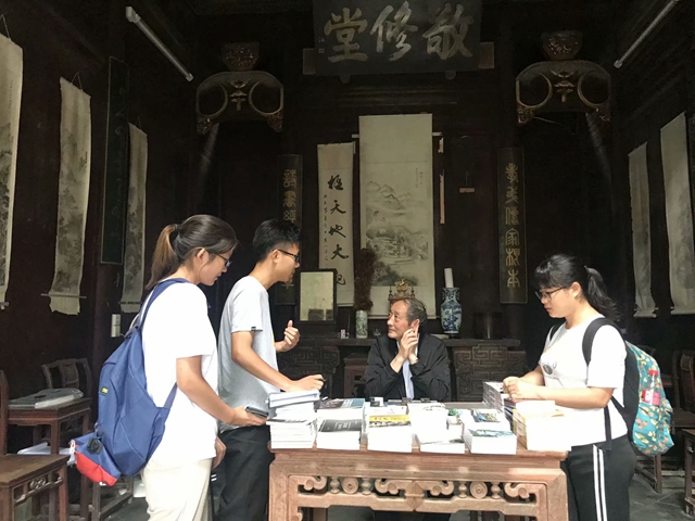 中午经过短暂的午休之后,团队开始进行走访调研。队员在走访询问当地土著居民过程中,了解到宏村目前的商业化程度较高,很多土著居民都已经搬到村外居住,目前留下来的都是景区商户。传统的宗祠是宗族精神的寄托,是家族集会、祭祖、议事以及婚嫁的场所。如今,在经济发展的洪流面前,文化的保存收到了极大地冲击,宗祠的传统作用也已经淡化。