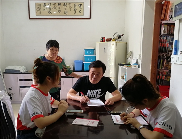 中午12点,队员们吃过午饭后,前去文具店进行家访。采访主题是:家长结合自身实际对于乡村教育的看法观点(核心是应试教育向素质教育转型过程的问题与意见)。首先询问其店主的家庭基本情况,如家长的受教育程度,家中有几个孩子,正处于怎样的年龄阶段,家庭经济状况如何等;其次,询问家长对其孩子的教育关注程度以及关注方式,包括关注孩子心理、对孩子成绩的重视以及和老师的沟通等的程度;最后,询问其对镇上教育的满意程度以及需要进步的地方。