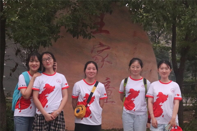 参观结束后,队员们在王家潼村口的大石碑处合影留念。
