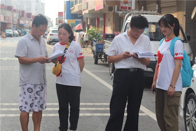 夕阳西下,吃完饭后,队员们兵分两路,继续以“光辉的历程,伟大的奇迹——庆祝中华人民共和国成立七十周年”为主题的问卷调研活动,旨在了解建国以来取得的成就和认同感。他们挨家挨户走访,积极与镇上的居民沟通,顺利完成调研活动的收尾工作。