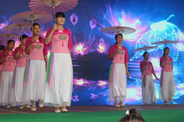 微雨过,小荷翻。观看完演出的人们纷纷来到百亩池塘边来赏荷,无边的碧色里是点点的淡雅红色,有的含苞待放,有的盛放而开,再加上紧紧簇拥着的莲蓬和荷花,盈盈碧水流淌其间,好一幅秀丽美观的夏色赏荷图!不禁令人流连忘返。
