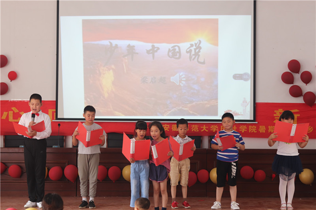 董事长致辞后,演出正式开始——“荷叶罗裙一色裁,芙蓉向脸两边开”,3个女生表演的拉丁舞将古典与现代完美融合;“美哉,我少年中国,与天不老!壮哉,我中国少年,与国无疆!”一段《中国少年说》的朗诵,诉出了多少爱国少年的心声;“爱因为在心中,平凡而不平庸。”一曲《爱因为在心中》,传达的是队员与孩子们短暂但深厚的师生之情……