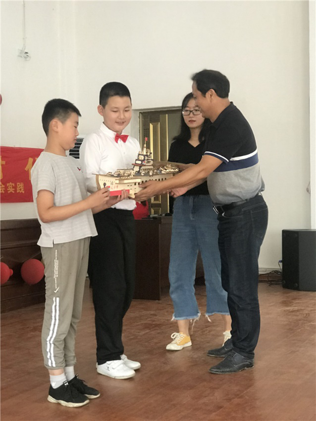 “颁奖仪式”结束后,队员们将买的物资以及手工制作的作品分发给了孩子们,并于孩子们合影留恋。