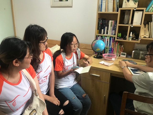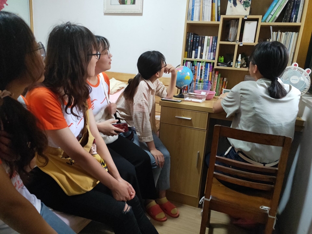 我们执笔,翻书,六个人,六种声音,同一个愿望,希望女孩能听懂我们的讲解,希望我们的描述生动有趣,女孩时不时地点头与轻笑就是对我们最好的鼓励。