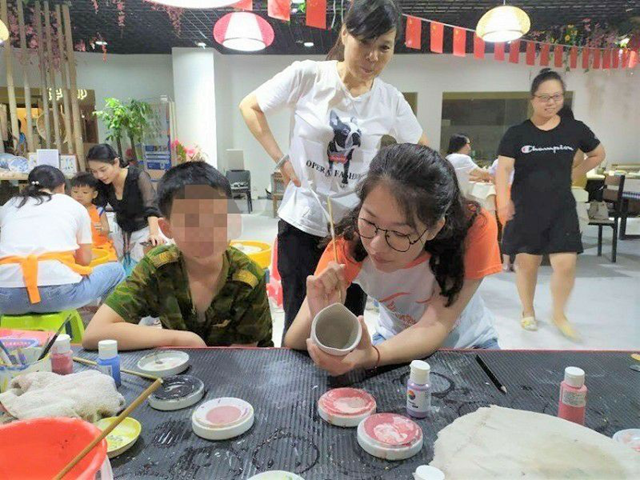 本网讯(通讯员 汪静)笔墨绘童真,丹青传真情。7月9号,为了和服务对象尽快熟悉起来,近距离接触服务对象,增加小组成员对服务对象的了解,以便日后活动的开展,小组成员同常驻志愿者一起陪同服务对象参加了“陶瓷手工绘画”活动。常驻志愿者带着三位小朋友,其中小贾是我们的服务对象,与我们一起前往奥特莱斯里面的陶瓷手工馆开展活动。此次活动目的是让这些小朋友增长他们的见识,提高他们的动手能力。