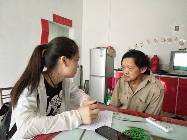 大家到达后分成小组开展调查工作。这里的村民热情,当我们到达他们家中,他们会热情的招呼我们坐下,招呼我们喝一些茶水,我们在调查的过程中感受到了这个村庄的淳朴民风。各组都奔走在这个村庄中,寻找我们的目标老人,结果非常喜人,大家都高质量的完成手中的问卷。