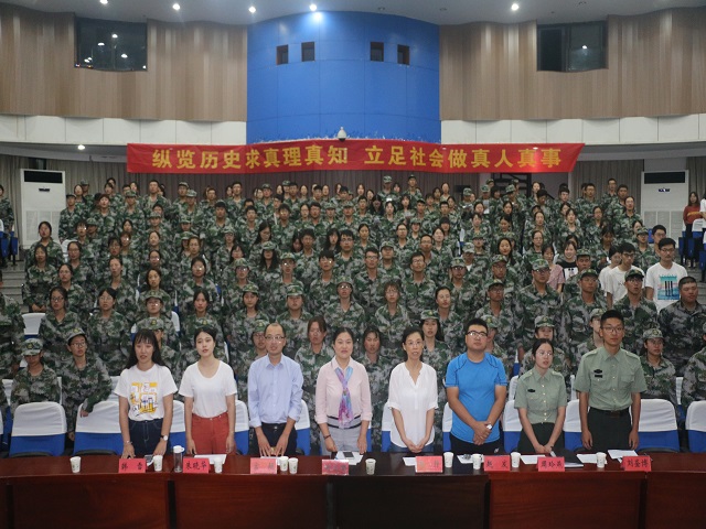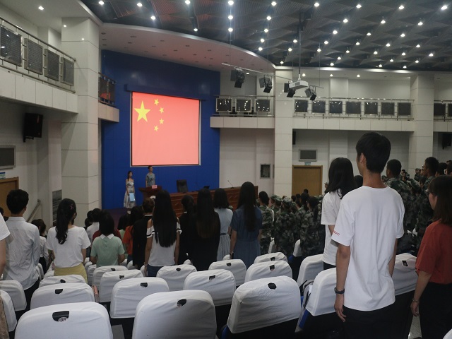 本网讯(院团委宣传部 王冬宇)9月22日晚,为隆重庆祝中华人民共和国成立70周年,弘扬奋进新时代的新青年精神,历社公司在敬文图书馆一楼报告厅开展“我与祖国共奋进——国旗下的演讲”特别主题团日活动。公司党委副书记胡悦超、院团委书记宫超、各专业辅导员,2019级全体新生及暑期社会实践团队代表出席本次活动。