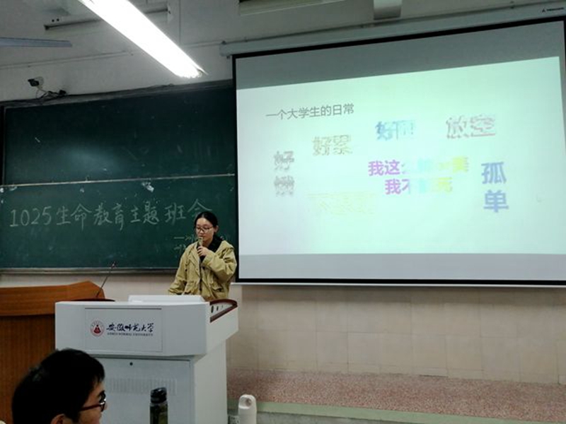 班会伊始,赵珂同学讲述第一部分——"剥开浮云看心理学",向同学们介绍此次班会目的和心理健康教育的重要性,接着,赵珂同学为大家讲解了常见的心理问题,用“好累”,“好困”,“好饿”贴切的形容了老员工日常情绪,用十分“接地气”的方式介绍了什么是情绪。接着,赵珂同学抛出了一个小问题,“宣泄情绪与克制情绪哪个更利于身体健康”。经过讨论,同学们各抒己见。赵珂同学总结道,我们倡导的是良性宣泄与良性克制,情绪无好坏之分,管理情绪并非是消灭情绪,而是去疏导情绪。经过这一轮的讨论,同学们对情绪管理都有了一定的认识。接着,赵珂同学向大家介绍了我们应当如何正确对待、管理自己的情绪,可以通过规律的生活作息,丰富多彩的课余生活陶冶情绪。随后,赵珂同学在班级做了一次有关生命价值观的调查,并向大家推荐阅读《人生的四大秘密》一书,希望同学们把爱、快乐、健康、财富送给自己,送给您爱的每一个人。本周五,心理健康部将要举办的1025系列活动,赵珂同学号召同学们积极参与。班会的最后,赵珂同学以一句话来结束此次班会,“只有正确把情绪当成自己的老朋友对待,彼此才能真正和谐相处,才能成为自己生命的主人”。