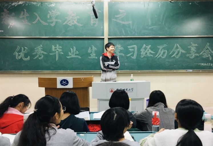 (本网讯 石菲)11月5日晚,历史学类一班和二班的同学共同在教室参加了优秀毕业生学习经历分享会的活动。本次活动由赵发老师主持进行,在12级优秀毕业生郭毅敏学长的分享下圆满落下帷幕。