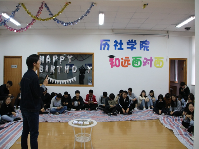 活动前期,班长联合班级干部开展班委会,共同讨论分工合作,为本次生日会做好准备。活动当天班委提前一小时到达社工实验室,为生日会的现场布置场地。下午三点,班级同学已经到齐并以团小组为单位坐下,秋季生日会正式开始,主持人为班长周风。