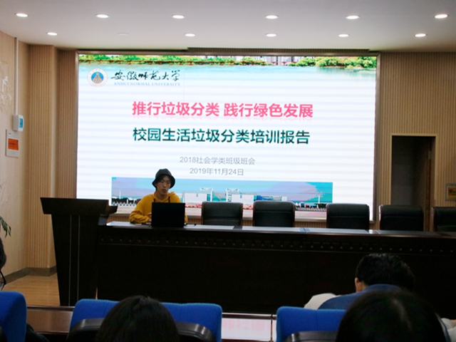 本网讯(王玲)为了调动同学们的积极性,普及垃圾分类相关知识,2018级社会学类专业于11月24日晚7:00在公司二楼会议室开展垃圾分类动员班会。辅导员韩雪及2018级社会学类专业全体成员共同参与。