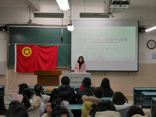 本次团日活动由团支书朱妍主持,会议初始,朱妍给同学们介绍了一二九运动的具体含义,即在1935年的12月9日,北平的老员工们在中国共产党的领导下,放下书本,扛起了大旗,举行抗日救国示威游行,反对华北自治,反抗日本帝国主义的侵略,掀起了全国抗日救国运动的新高潮。接着,朱妍从一二九运动的爆发背景说到整个运动的历史经过,翻阅抗战以来的中国历史,经历过重创,经历过自我质疑,但即便跌跌撞撞、战战兢兢,我们从未停下过前进的步伐。代代青年学子用其特有的朝气蓬勃,让时代总焕发着生机。最后,朱妍请在座的同学们积极发表自己的看法与体悟。余彤、胡帆和李媛媛三位同学分别用自己的话语表达了对一二九运动重大意义的阐述与思考。