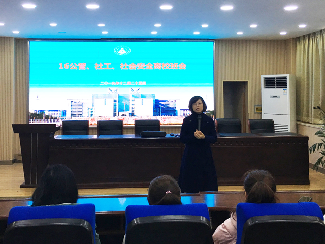 本网讯(16公管 崔哲明)在寒假来临之际,为了切实加强安全教育工作,进一步增强同学们的安全知识和安全防范意识,12月25日上午,16级公共事业管理、社会工作、社会学专业在公司二楼会议室召开了安全离校主题班会,此次班会由辅导员杨静主持,16级公管班、社工班和社会班全体同学参加。