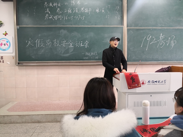 会上,宫超老师回顾了班级一学期以来的学习、生活,肯定了同学们的努力成果,号召大家继续努力,争取明年取得更大进步。针对2018级社会工作(专升本)的毕业情况,他还做了具体要求:一是要完成毕业论文写作,二是要积极找工作,三是要主动对接联系实习单位。对于假期离返校的安全教育,他强调,安全无小事,警钟需长鸣。同学们离校前要严格遵守校规校纪和四项禁令,筑牢安全底线;签好离校登记表,注意关好门窗、切断电源、关闭水龙头,保管好个人贵重物品;离校途中不搭黑车,注意财产安全,增强防范意识,防止受骗上当;安全到家后第一时间将情况以短信或QQ消息等形式汇报给安全委员汇总都统一汇报给辅导员。他指出,寒假期间处于冬季,气温较低,要注意作息规律,加强体育锻炼,预防流感。假期兼职防骗防传销,拒绝网贷,注意网络信息安全。最后,他根据公司和公司的文件规定,要求同学们个人参与寒假社会实践、多读专业书、多陪陪父母等等。