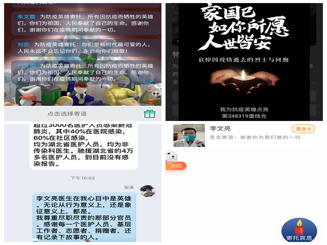 4月4日上午10点,沉重的防空警报声准时响起,17公管班的54名同学在家中静立默哀,深切缅怀在抗击新冠肺炎疫情斗争中牺牲的烈士和同胞们。接着,大家登录中华英烈网、中国文明网、中国青年网或退役军人事务部网站,或者在“皖事通”软件上,进行网上祭扫活动。在网上英烈纪念馆,同学们了解到了许多英烈的先进事迹,纷纷通过献花、留言和为英烈点亮烛光等形式在网上向英烈们表达哀思和敬意。