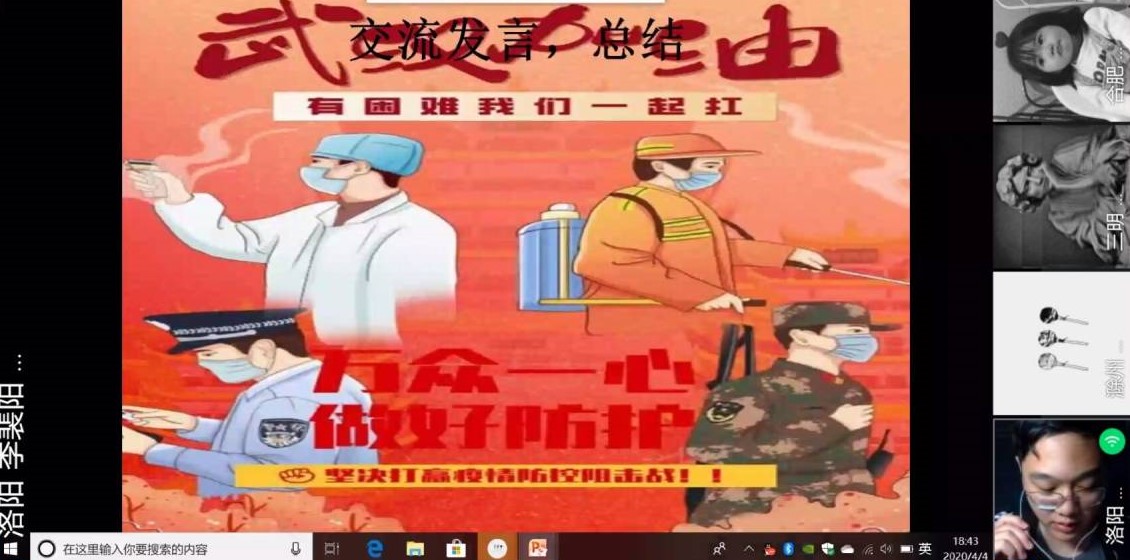 按照会议进程,由班级同学为大家讲述疫情期间的英烈故事,并且分享见解与感悟。其他的同学也就疫情期间的感人事迹和“清明祭英烈”相关活动带来的感动,分享了自己的切身体会和真实想法,表达抗疫英雄的尊敬和对全国上下团结一致的自豪感,引来同学们纷纷点赞。最后,团支书分享自己对于本次清明追思活动的想法,再次表达对英雄的尊敬之情,并对会议进行总结,号召同学们以英雄做榜样,做有抱负的好青年,至此本次团日活动圆满完成。