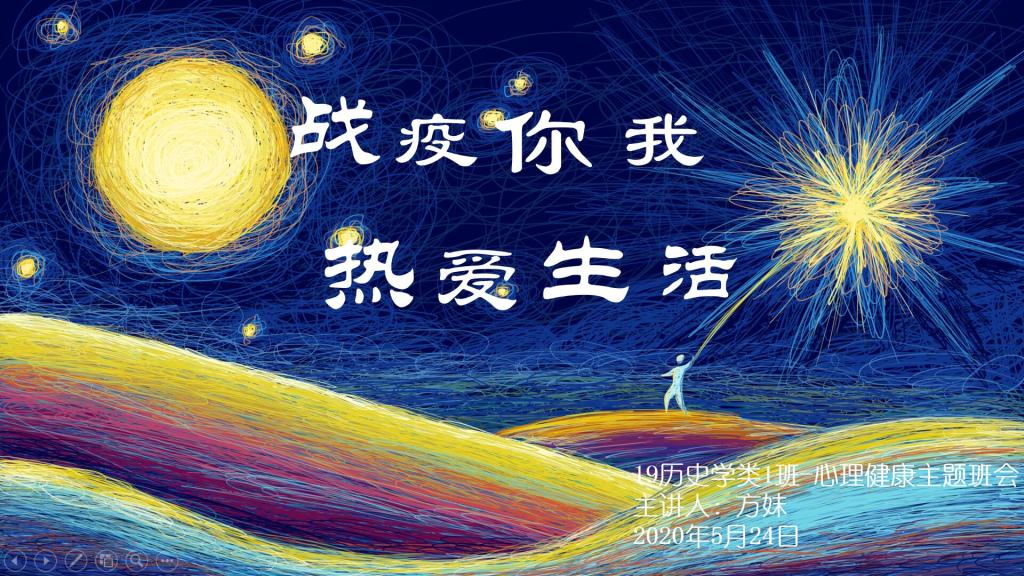 (本网讯 刘燕杰 方妺)为了响应公司“5.25心理健康月”系列活动的号召,加强疫情期间同学们心理健康教育工作,有效预防突发性心理危机事件,引导同学们保持平和理性、积极向上、健康开朗的心理状态,2019级历史学类一班召开了以“战疫你我,热爱生活”为主题的心理健康班会,班会由辅导员周玲燕老师指导,心理健康委员方妺主持,全班同学参加。