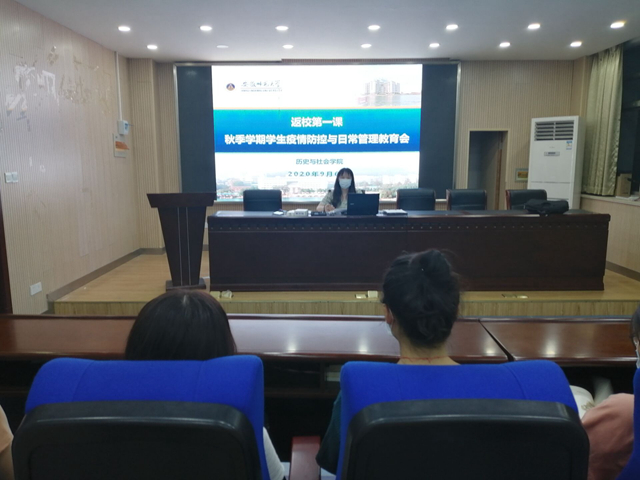 (本网讯 严文雯)为进一步做好新学期疫情防控日常管理工作,利用入学契机宣传疫情防控知识,落实防控措施,辅导员韩雪老师于9月6日晚七点在公司二楼会议室开展了秋季学期员工疫情防控与日常管理教育会,2017级公共事业管理专业全体同学参会。