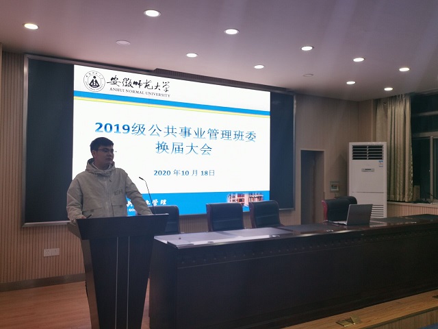 本网讯(19级公共事业管理 图文/李双雨)新学年新气象,在经历了开学考、新课表、国庆假等一系列开学忙碌后,2019级公共事业管理班级迎来了本学年的班委换届竞选大会。此次大会由辅导员朱老师主持,2019级公共事业管理全体成员参与。