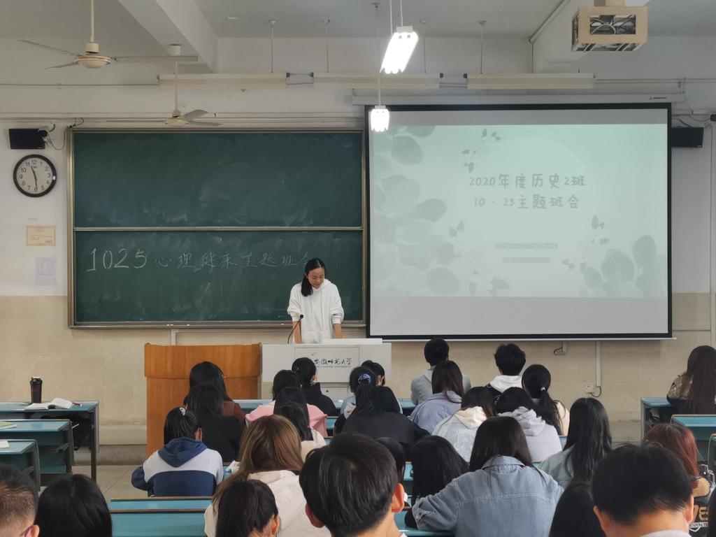 (本网讯 叶宁宁 周晨茜)为宣传心理健康知识,引领大家正确认识心理问题,学会悦纳自我,从而进一步培养本班同学良好心理品质,2019级历史学师范2班于10月23日在2010301教室召开心理健康班会,班级全体同学共同参与。