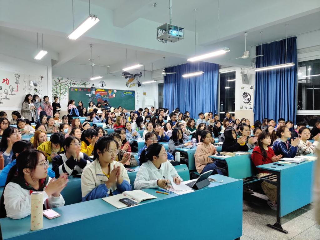 动员大会由三位学长学姐依次上台分享微课设计知识,并畅谈在实际教学中的感受,“三维一体”将微课教学相关内容展现在大家面前。一、教学技能大赛对师范生的意义:有利于自我的发展与提升,提升师范技能;二、备课与讲课:课程以逻辑为核心,吃透教材和课标,课件制作要简约、大方,讲课生动形象并且流畅;三、授课方法:注意语言、情感、板书、手势,以讲授法为主,演示法、讨论法为辅。此三个维度构成一体全方位展示了微课教学。在分享过程中,学长学姐以秦的统一与巩固、工业革命、中日甲午战争等事件为例,以朴素幽默的语言更深入的为同学们传输教学经验。大会中同学们积极性较高,沉浸在学长学姐们的教学风格中。