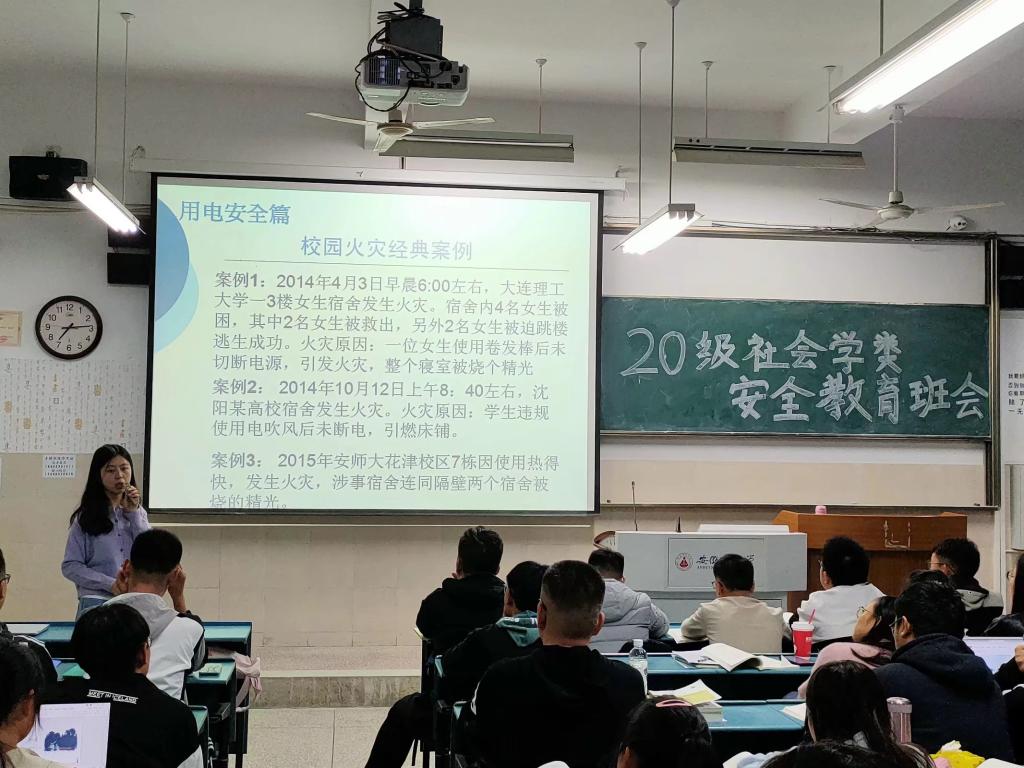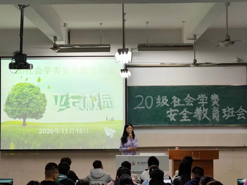 (本网讯 程冉 孙皓冉)11月14日晚7点,20社会学类安全教育班会于2040101教室召开,此次班会由辅导员刘金金老师主持。会上,刘老师就校园相关安全问题作了详细说明,特别就相关安全问题的严重后果与应对措施进行了着重介绍。