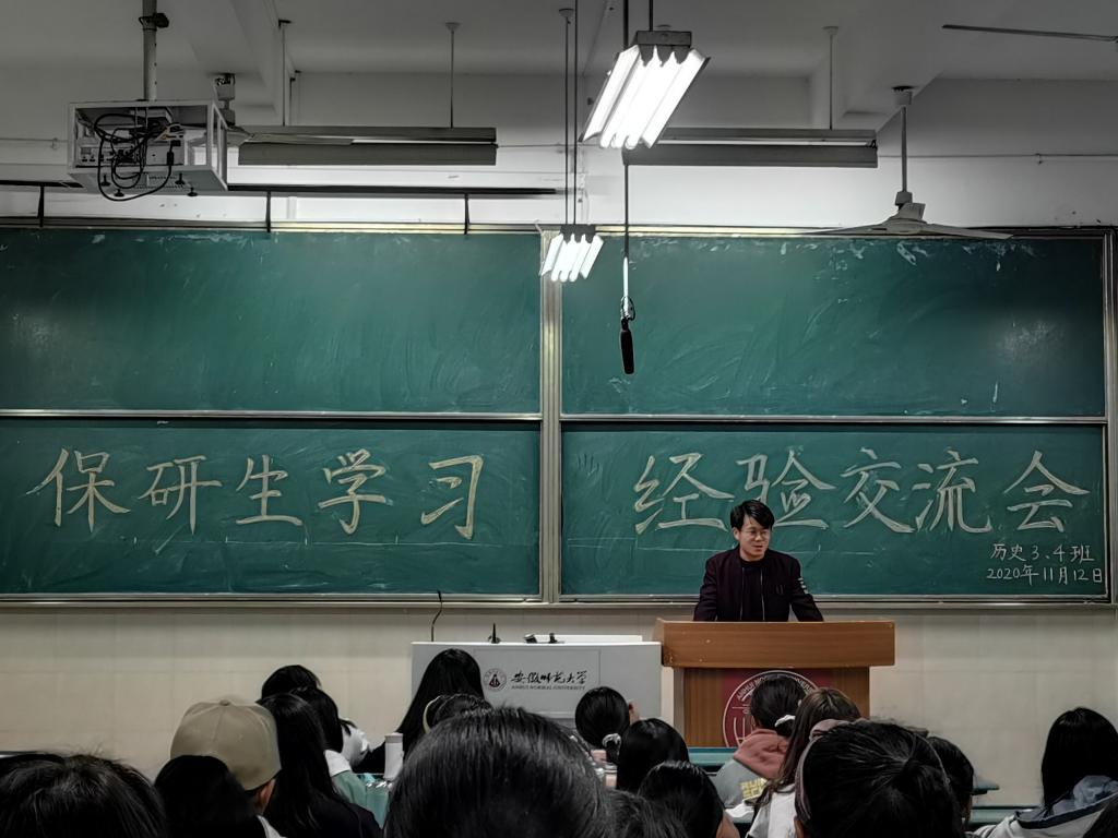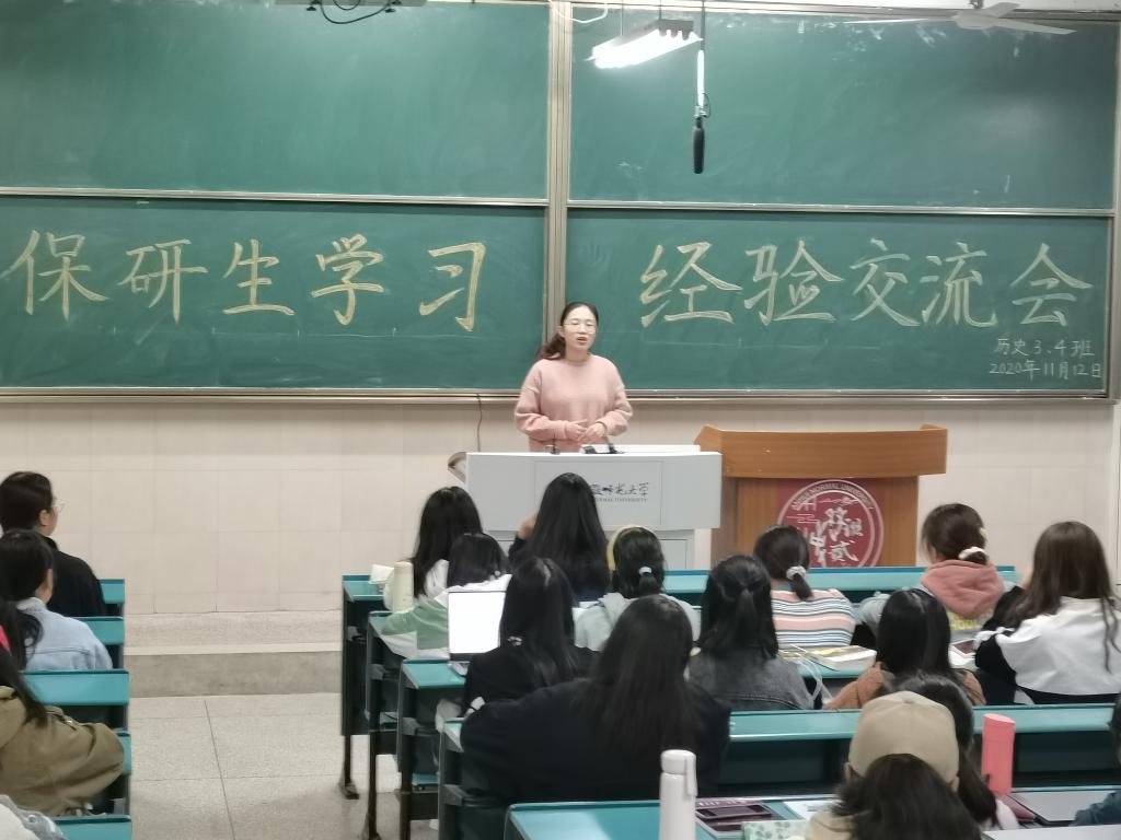 (本网讯 叶萌)2020年11月12日晚,2020级历史学类4班全体同学在行知楼2050102教室参与了由17级历史学保研生陈沁萍担任主讲的保研生学习经验交流会。在交流会中,陈沁萍学姐从多方面给予大家学习上的建议,积极与本班同学开展交流。