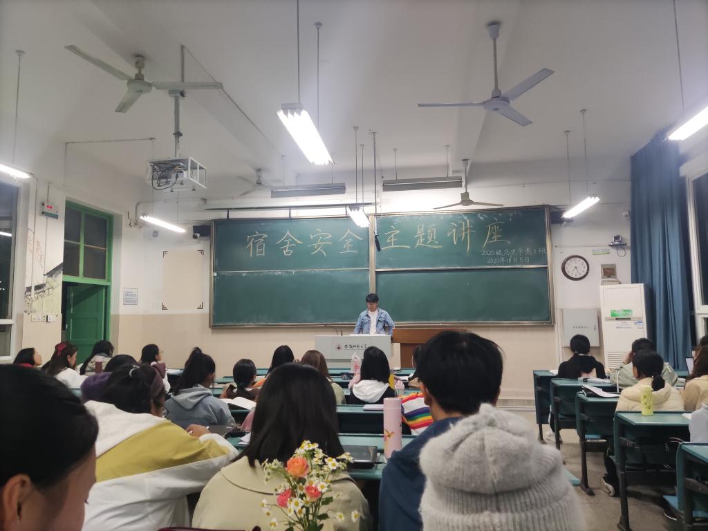 (本网讯 饶少旗)2020年11月5日晚7点30到8点30,辅导员郭忠尧老师在自习教室2050102召开宿舍安全主题班会,给同学们讲解宿舍安全事宜。郭老师从各个方面讲述了我们老员工在安全方面应该注意的事项、安全隐患以及预防方法等。重点讲解了宿舍火灾的危险与预防、人身安全、财产安全问题。