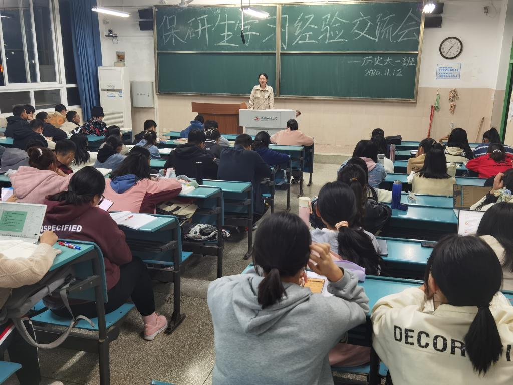 (本网讯 倪子菲)为帮助同学们解决学习问题,提升学习成绩,20级历史2班于2020年11月12日19:00-20;00在行政楼2050101教室举办保研生学习经验交流会。我班特别邀请17级历史师范类专业保研生刘子琦学姐分享学习经验。