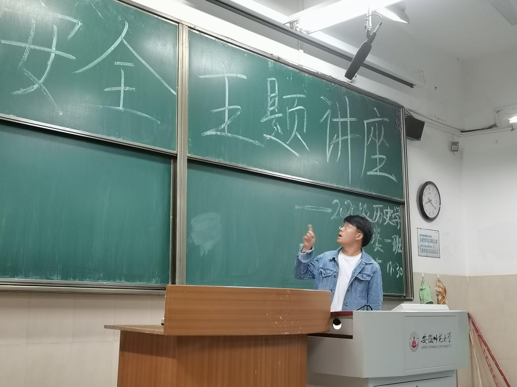 (本网讯 梁芮侨)为教育同学们关注安全问题,辅导员郭忠尧老师在固定教室2050101召开以“宿舍安全”为主题的班会。班会主要强调三点内容:首先注意宿舍卫生,其次严禁晚归不归,最后严禁宿舍使用违规电器。