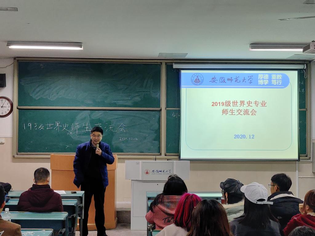 (本网讯 19世界史 马志伟)作为推动中国教育砥砺前行的坚定力量,温暖的师生情世代传承。为加强师生交流,进行专业介绍、解惑,在韩家炳老师的精心组织下,辅导员周老师调动班级同学积极参与,班长何宇立做好会前问题收集等工作,19世界史第一次师生交流会于12月2日下午3点在2040105教室圆满召开。解光云老师、曹升生老师、江琴老师、王闯闯老师等老师共同出席活动。