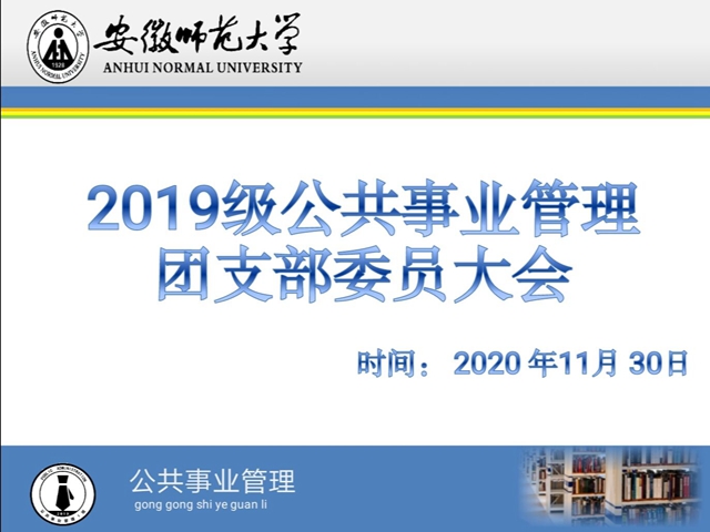 本网讯(图文/孙凌敏)为加强团支部建设,提高团支部工作能力和管理水平,进一步增强基层团组织的吸引力、凝聚力和战斗力,19级公共事业管理班于2020年11月30日召开了线上团支部支委会。会议在辅导员朱昌焰老师的指导下,由团支书郑子悦主持召开,团支部副书记、组织委员、认证委员以及班级团小组组长参加了会议。