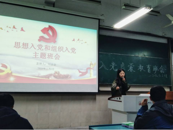 (本网讯程冉)2020年12月6日晚,20级社会学类组织召开入党启蒙教育主题班会,刘金金老师就思想入党和组织入党向同学们进行了详细的介绍。