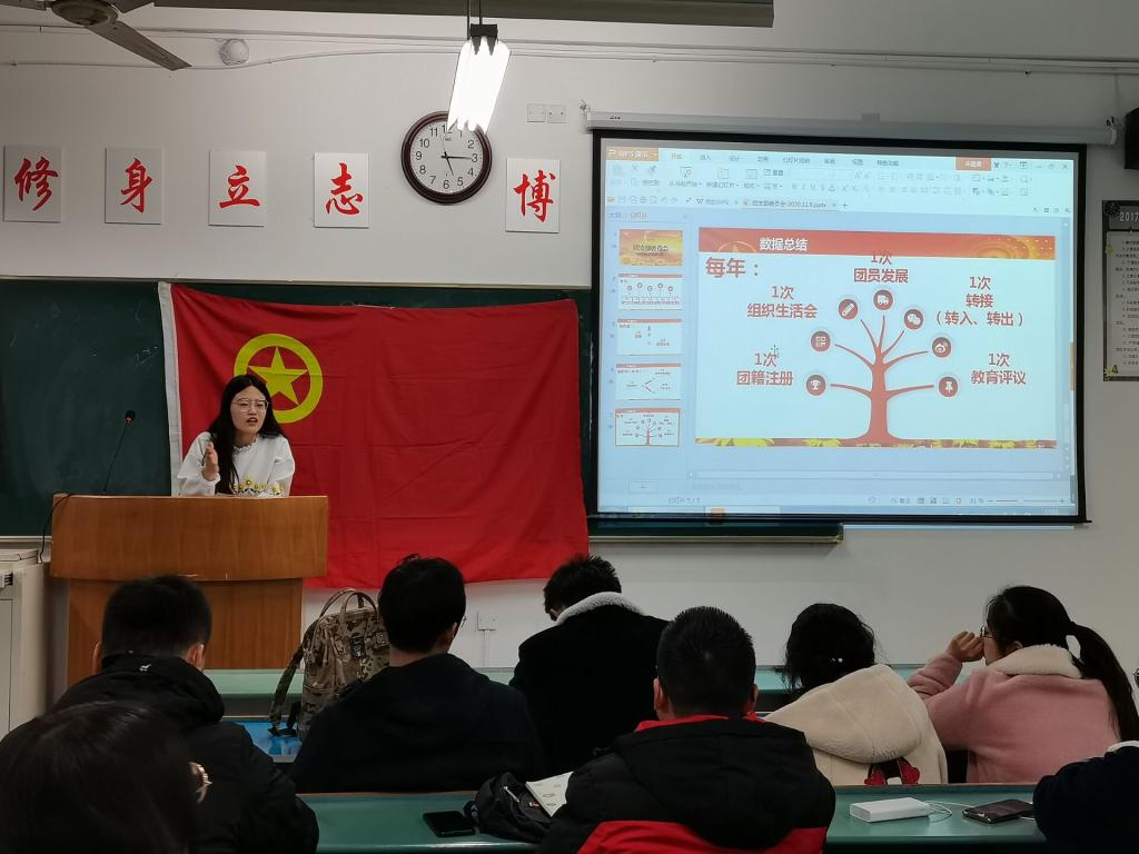 会议伊始,团支部书记梅立浩同学对团支部制度和工作进行介绍,介绍本学期支部所有工作及其流程,从每月、每季度、每学年、每半年四个方面开展数据总结,详细说明工作情况。每位委员全面了解了支部工作,对接下来支部工作的完成起到了良好的促进作用。