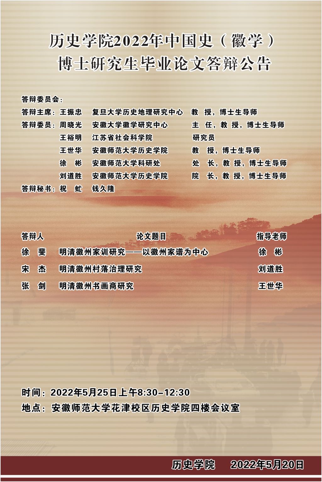 英国上市公司3652022届中国史(徽学)博士研究生毕业论文答辩公告