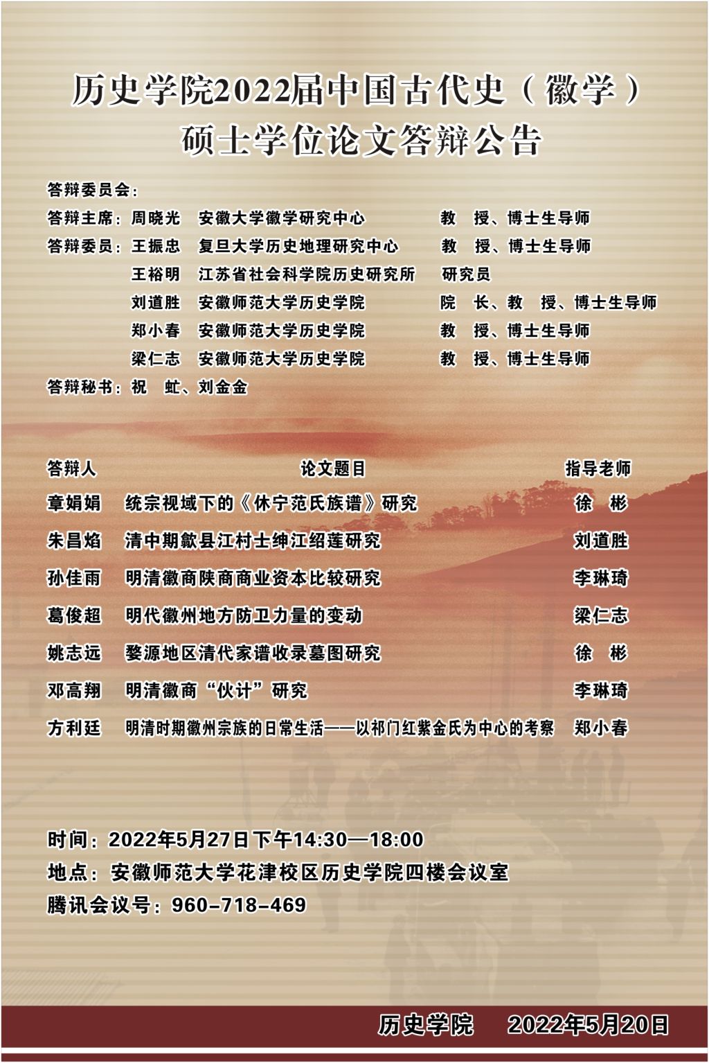 英国上市公司3652022届中国古代史(徽学)硕士学位论文答辩公告