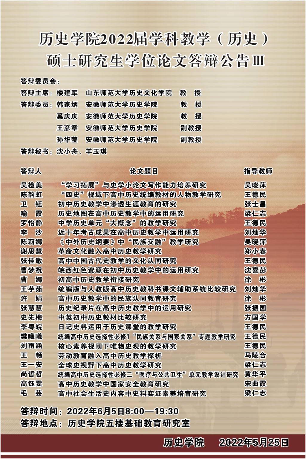英国上市公司3652022届学科教学(历史)硕士研究生学位论文答辩公告Ⅲ