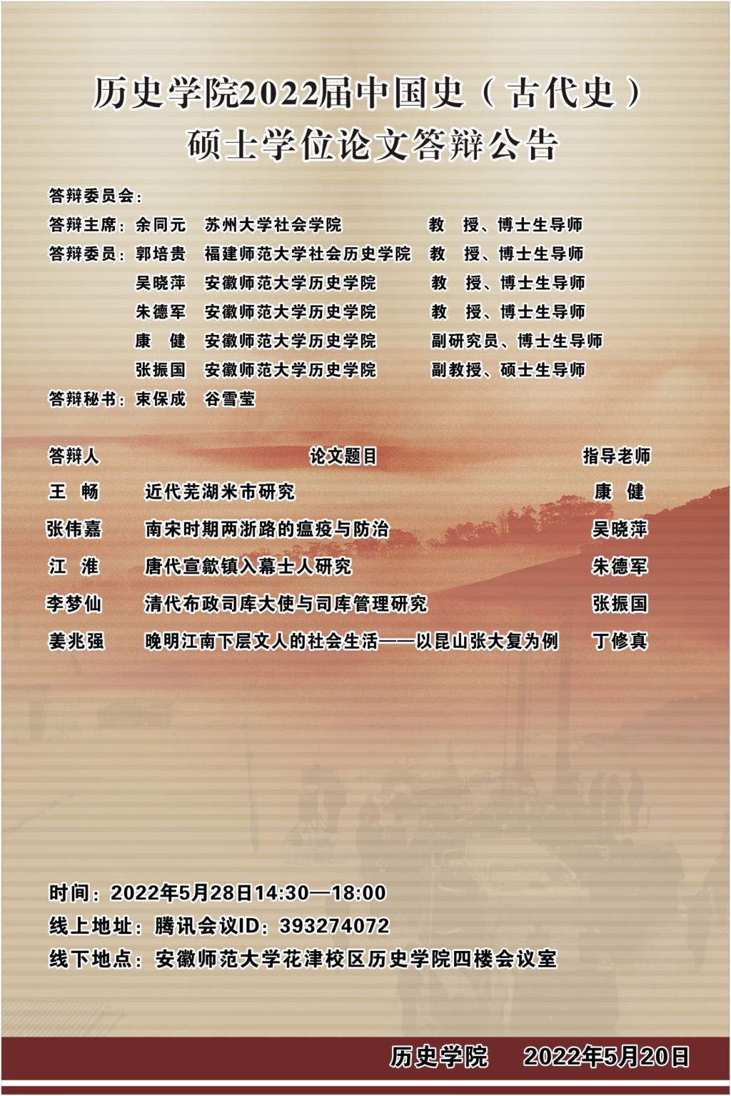 英国上市公司3652022届中国史(古代史)硕士学位论文答辩公告